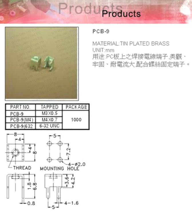 PC板焊接端子 (1000pcs/包) (ROHS)