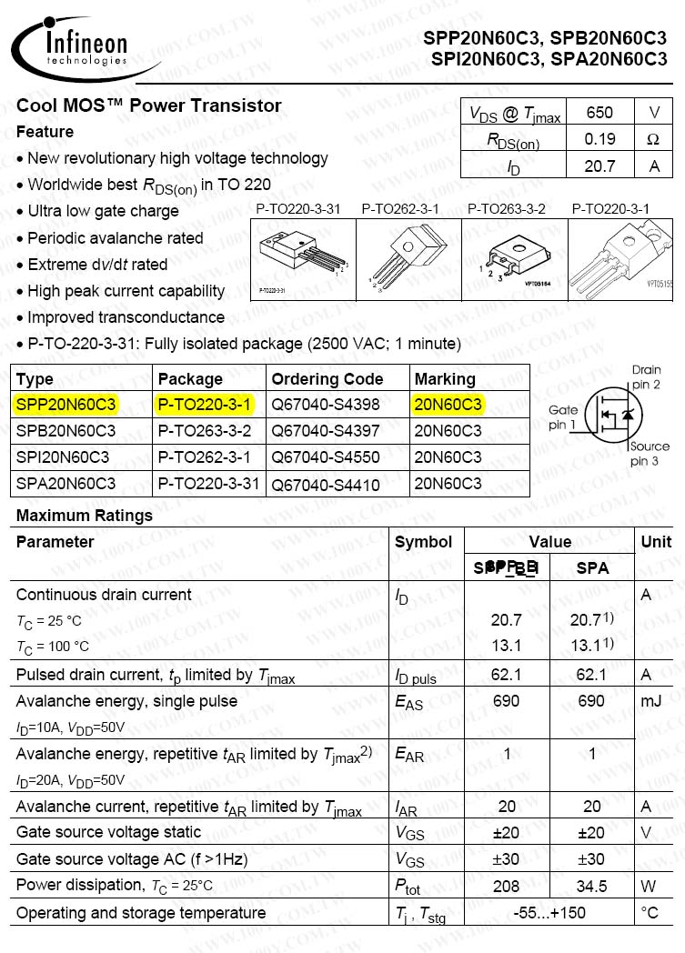 SPP20N60C3