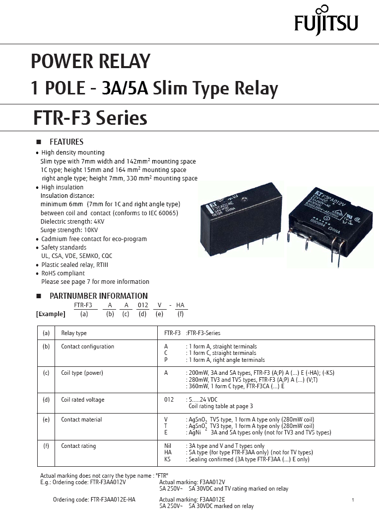FTR-F3 繼電器 Coil:24Vdc【ROHS】
