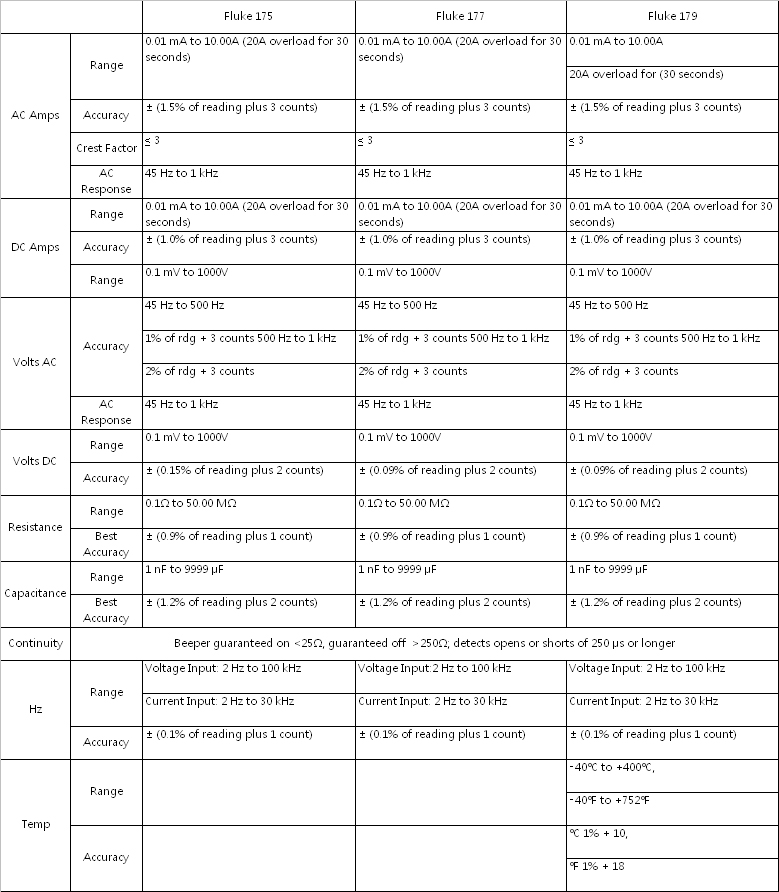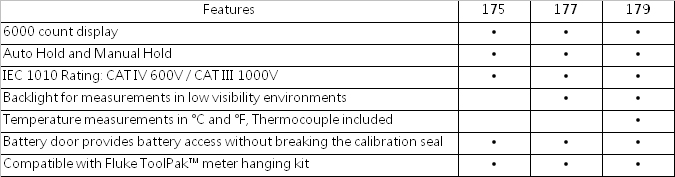 ●170系列萬用表型號均具真有效值電壓和電流測量。