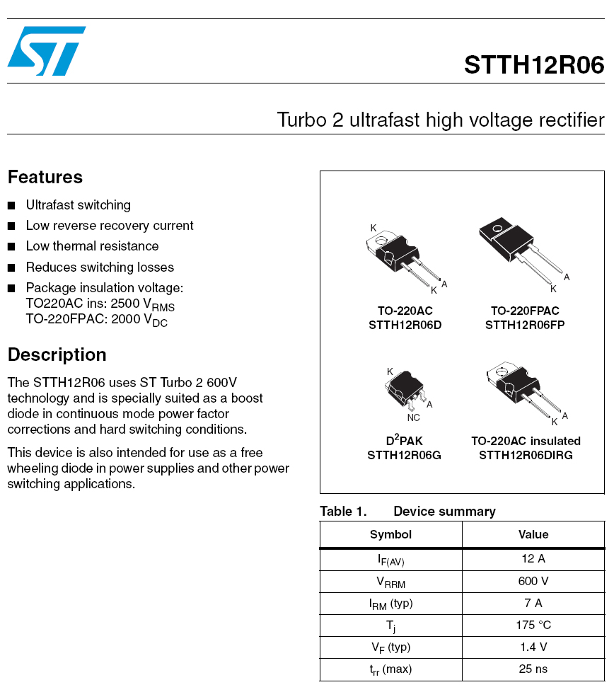 ST(SGS)-STTH12R06D