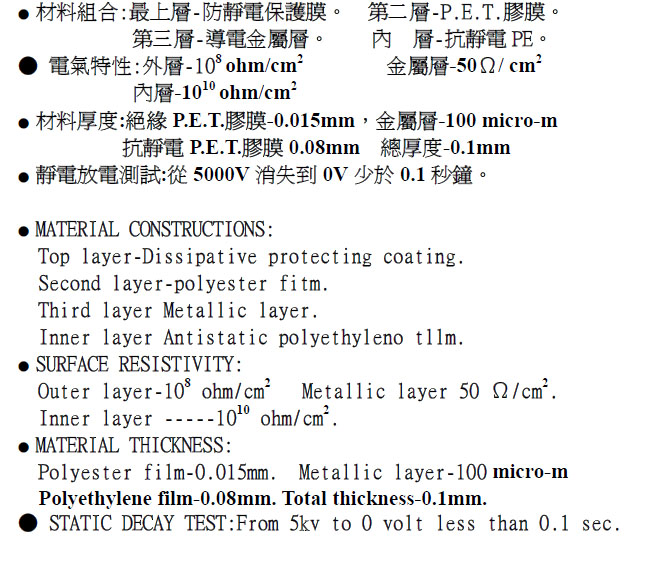 金屬靜電隔離袋-60*100*0.075mm
