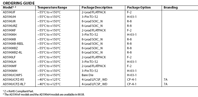 ●鐳射調整至±0.5°C校準精度(AD590M)