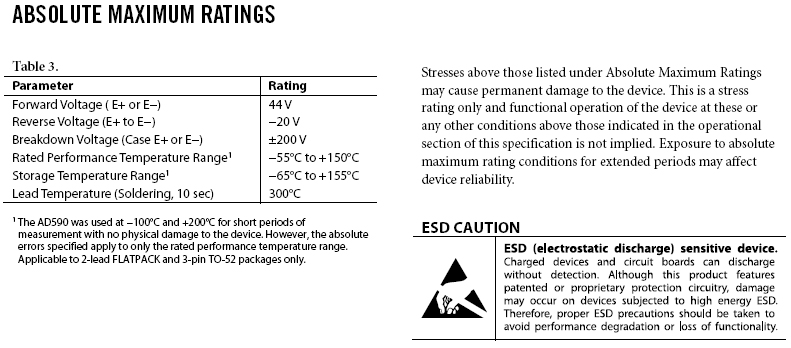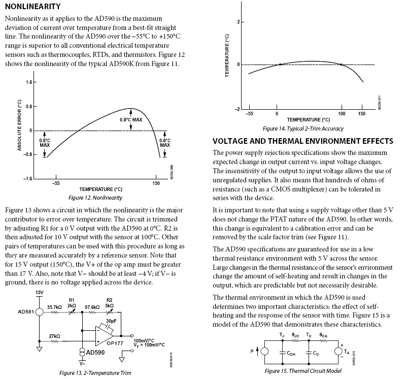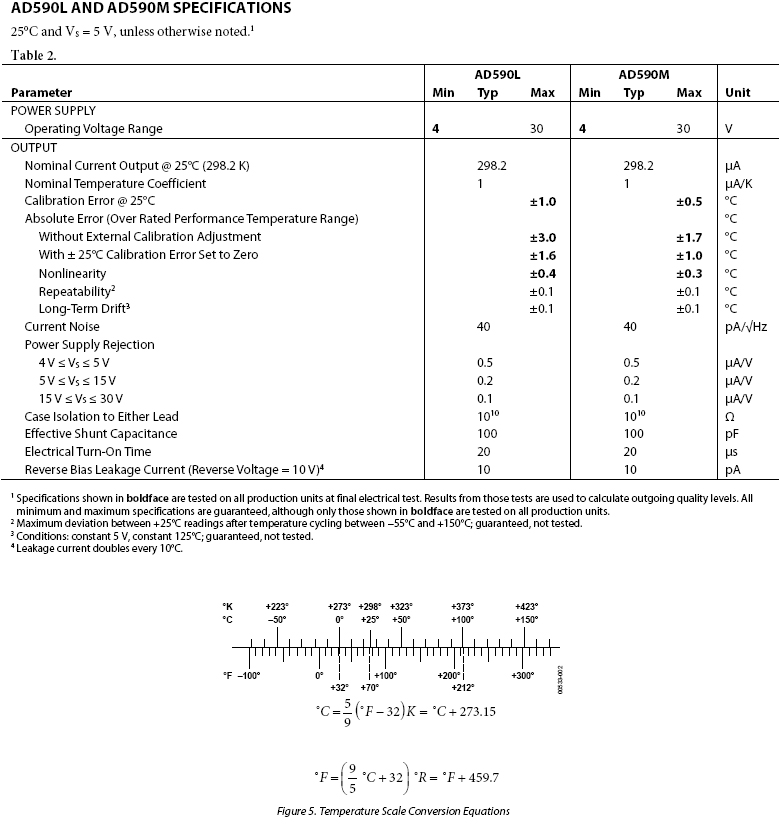●出色的線性度:滿量程範圍±0.3°C (AD590M)