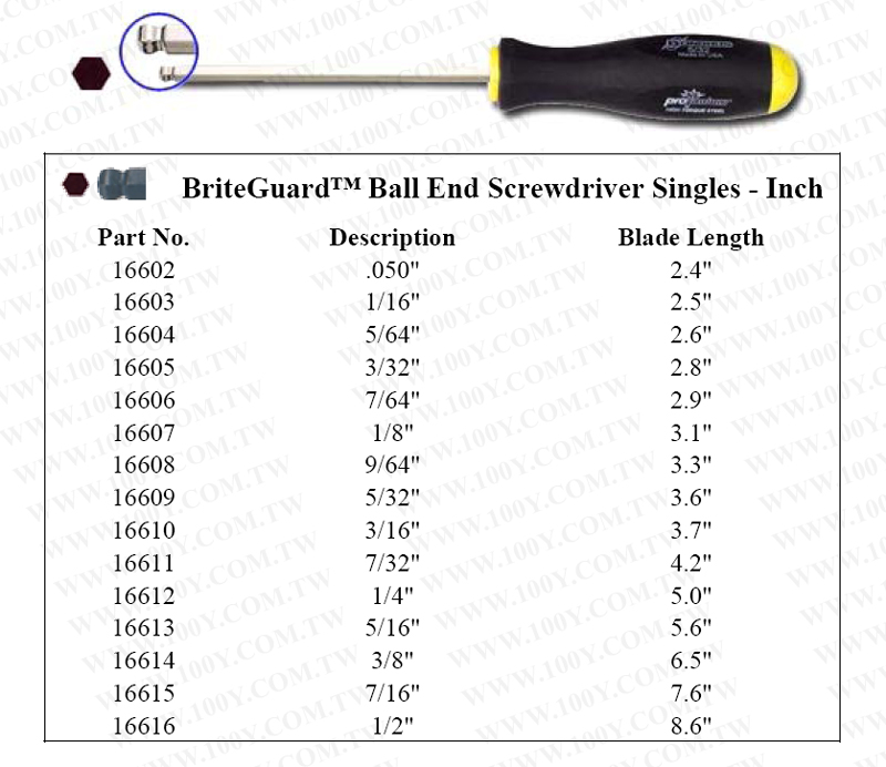 白金起子球型六角板手-英制