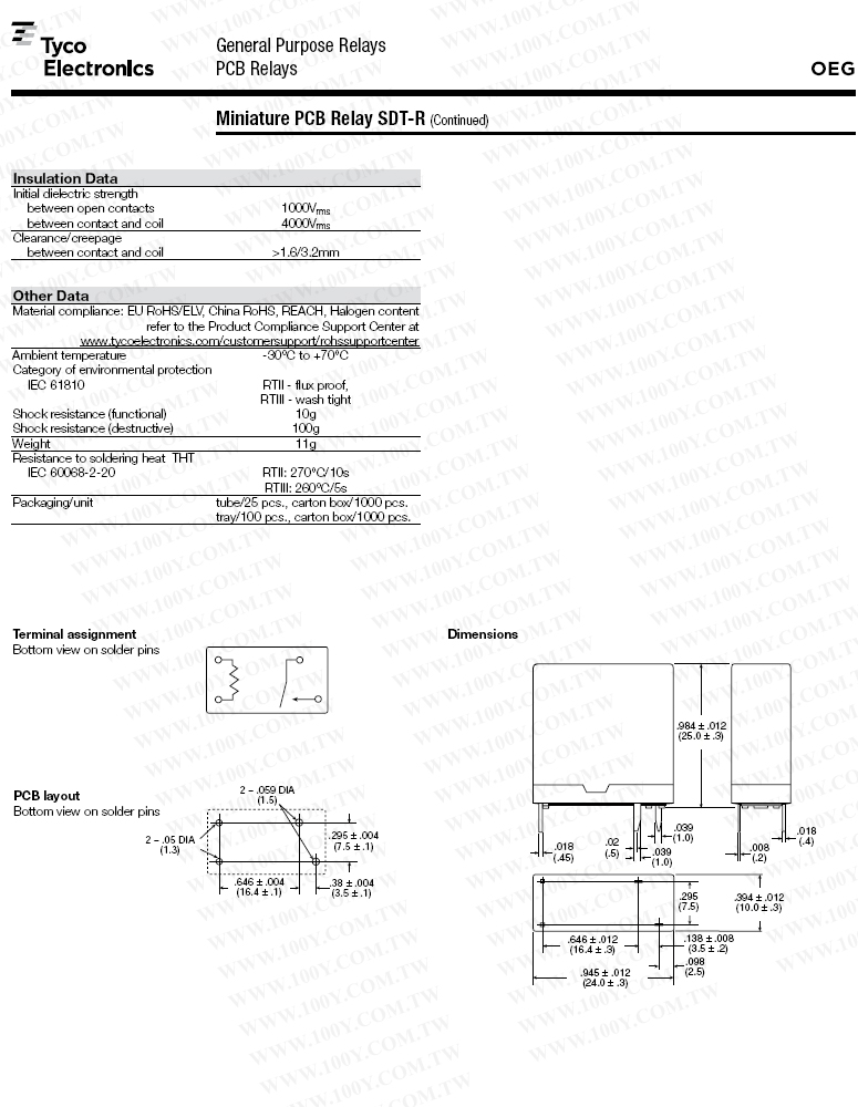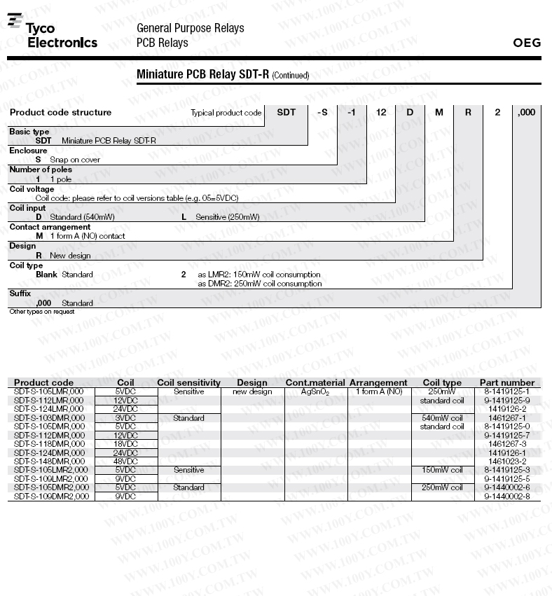 通用繼電器SPST 5V 10A 47Ohm 540mW