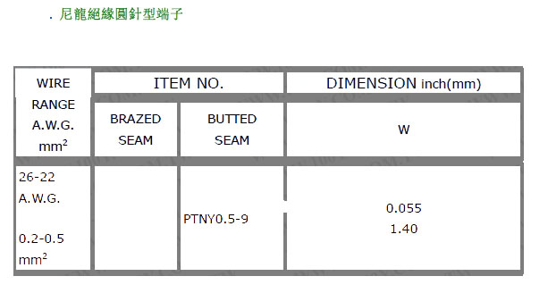 KST-PTNY0.5-9 105℃ 針型端子 (100個/包)