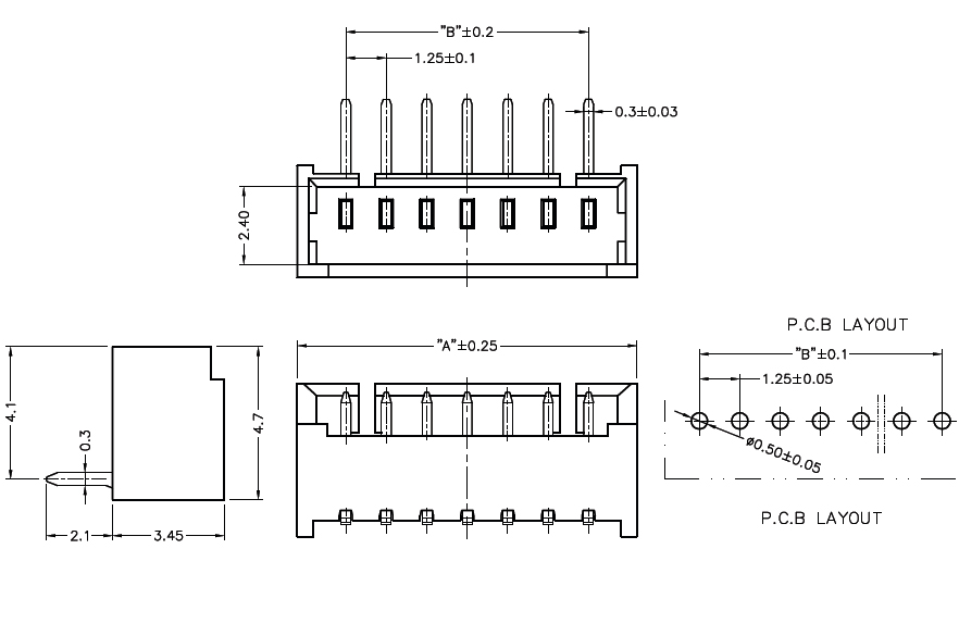 53048-1.25mm-7P 彎針針座 90°