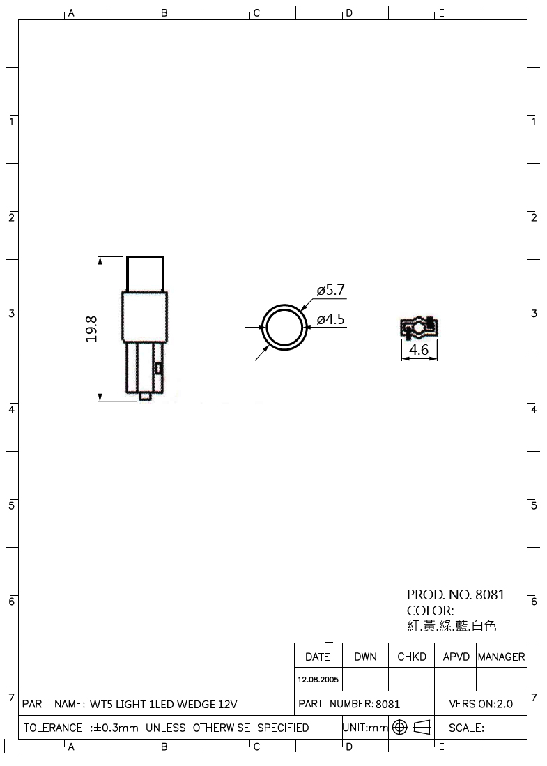 WT5 LED12V 平頭黃色