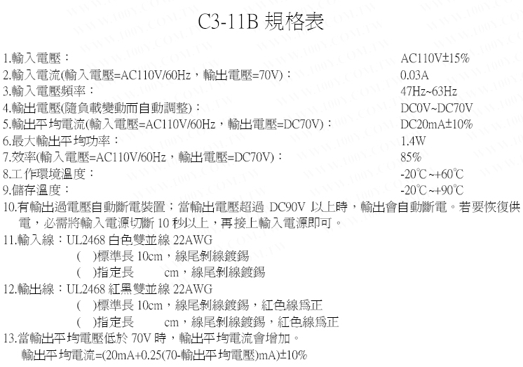 | 65152 | C3-11B | AC110V | DC70V/20mA | 1.4W |