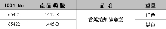 1445 香蕉插頭 鯊魚型 產品顏色 有黑、紅兩色可選