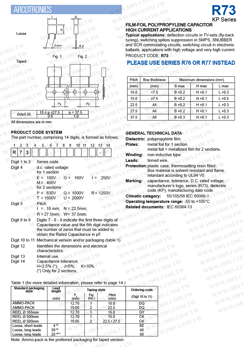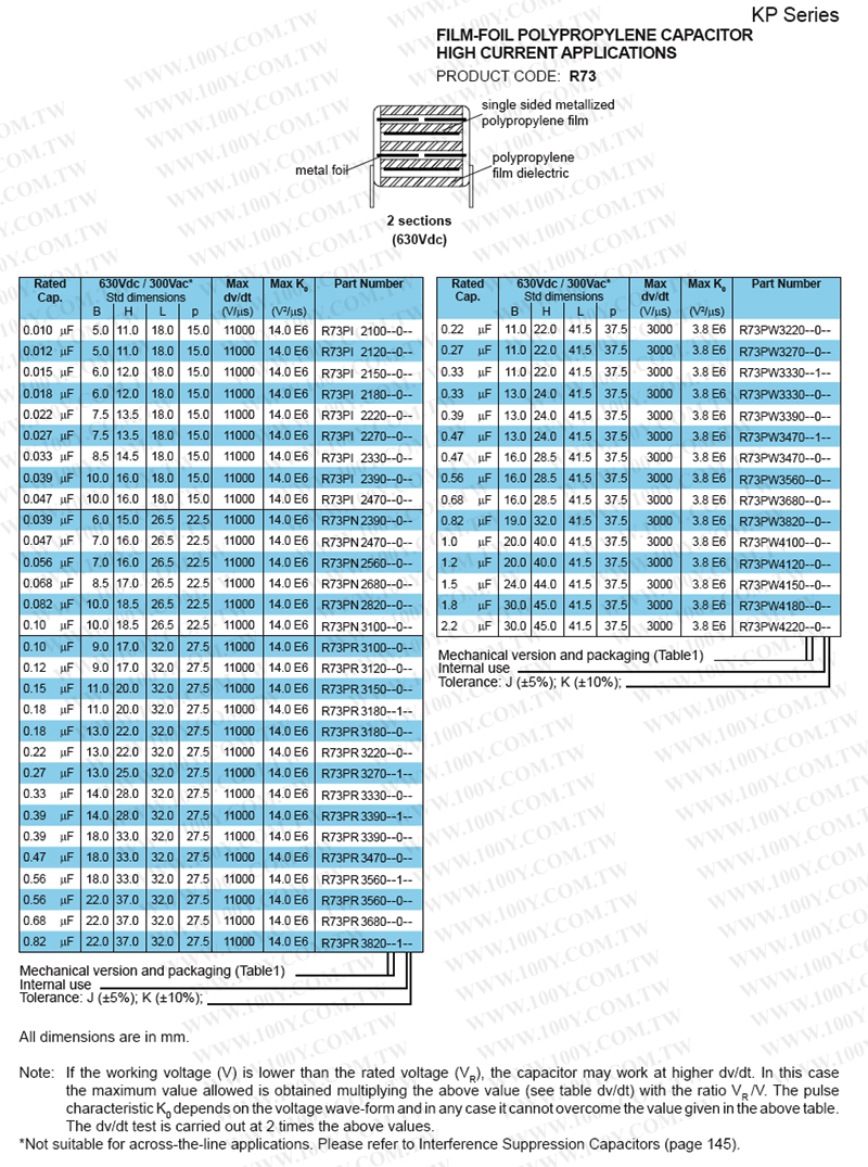 R73系列 聚丙烯電容 0.1uF/630V ±5%