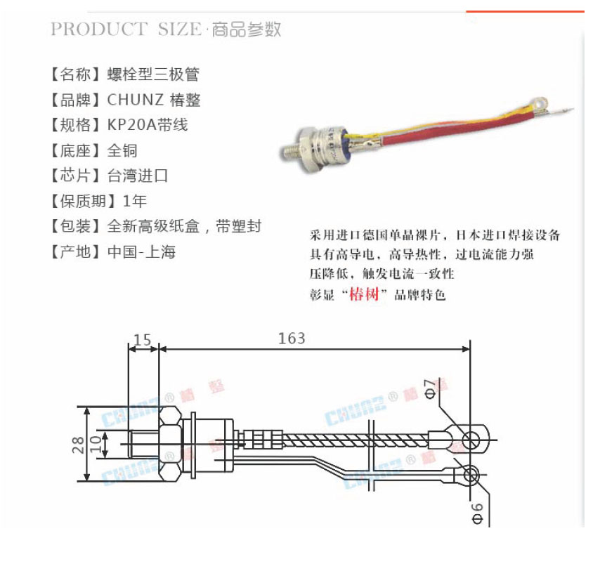單向可控硅晶閘管3CT螺旋琺琅型