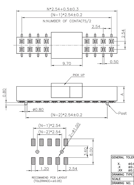 SMD 2*20雙排母座 P:2.54mm