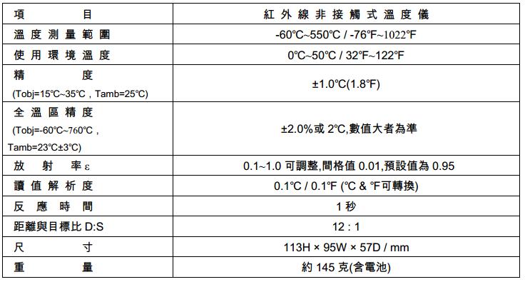 -60℃~550℃ 雷射指示 D:S=12:1