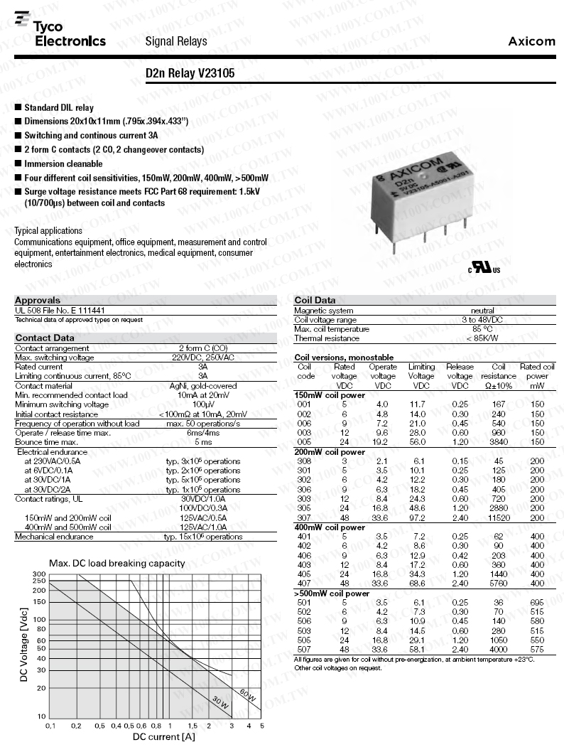 低訊號繼電器 - PCB 5VDC Non-latching 1 coil 150mW D2n