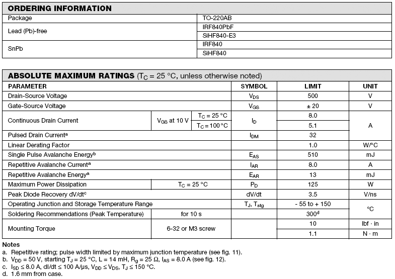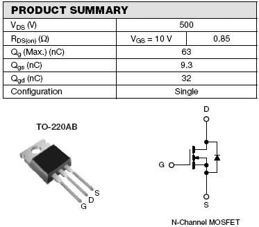 Third generation Power MOSFETs from Vishay provide the designer with the best combination of fast switching, ruggedized device design, low on-resistance and