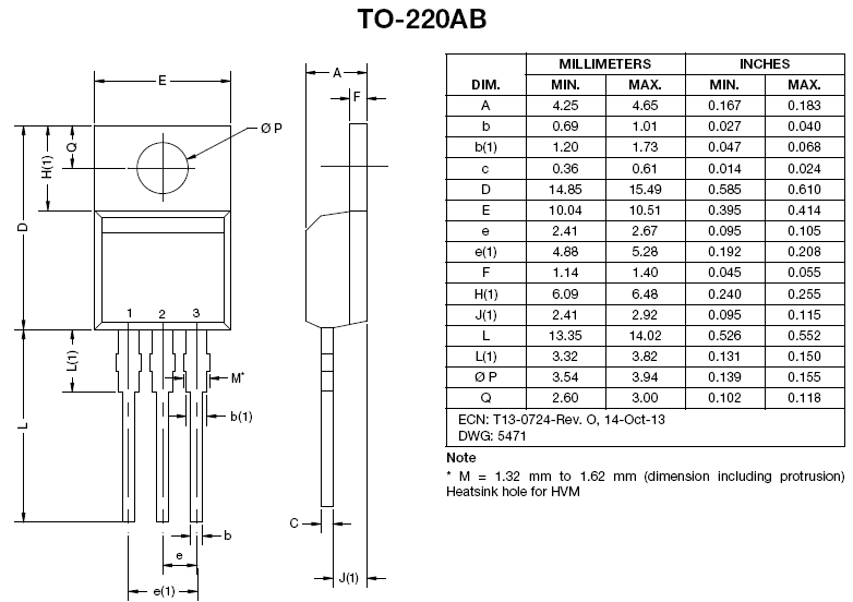 The TO-220AB package is universally preferred for all commercial-industrial applications at power dissipation levels to approximately 50 W. The low thermal resistance and low package cost of the TO-220AB contribute to its wide acceptance throughout the industry.