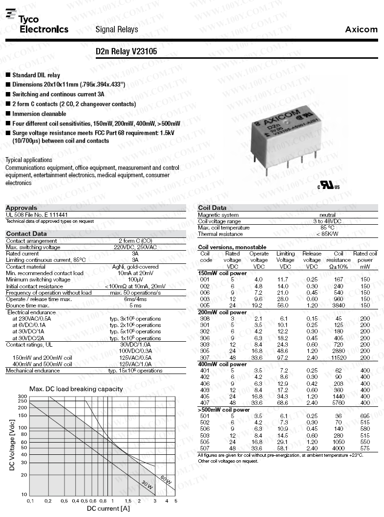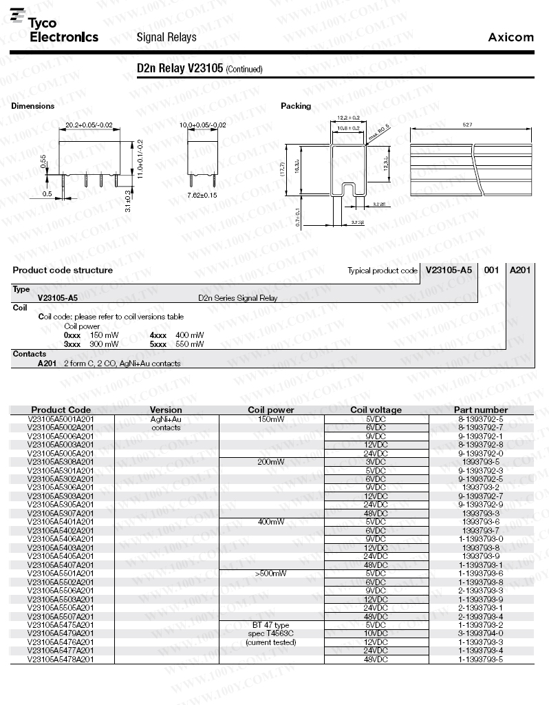 低訊號繼電器 - PCB 24VDC Non-latching 1 coil 200mW D2n