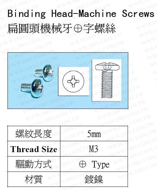 扁圓頭機械牙十字鍍鎳螺絲