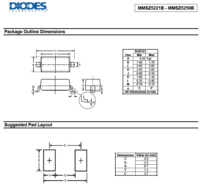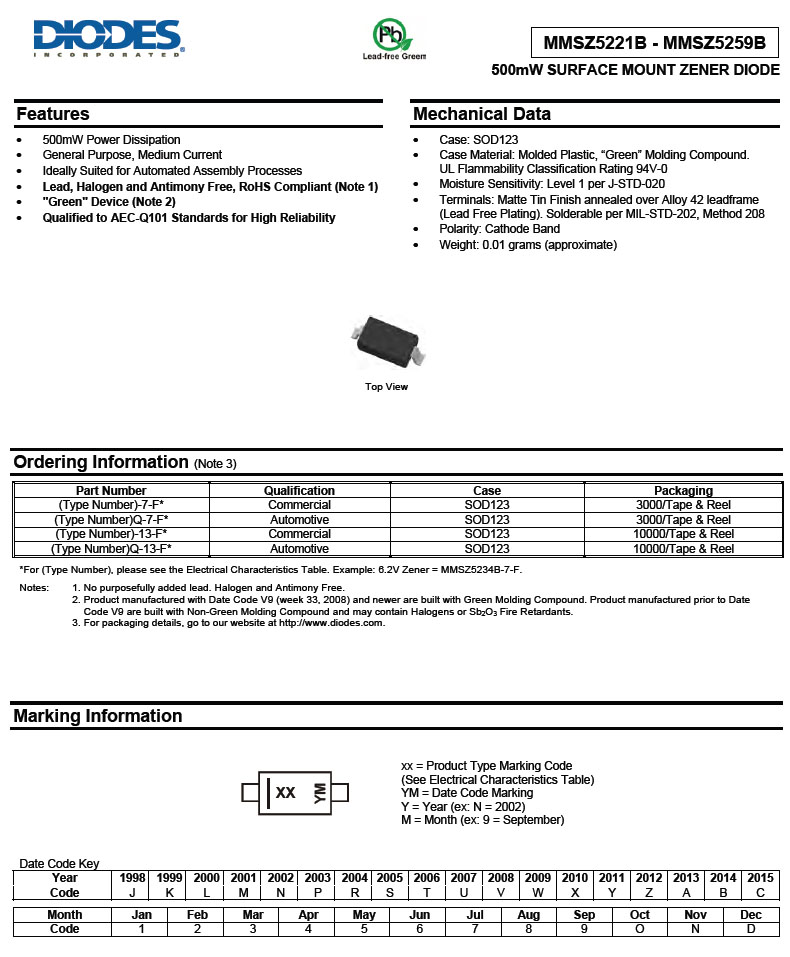 SOD-123(ROHS) 穩壓二極管 5.1Vz 500mW
