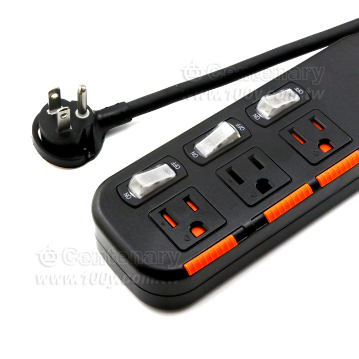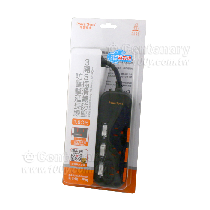 三開三插滑蓋防塵防雷擊延長線 1.8M
