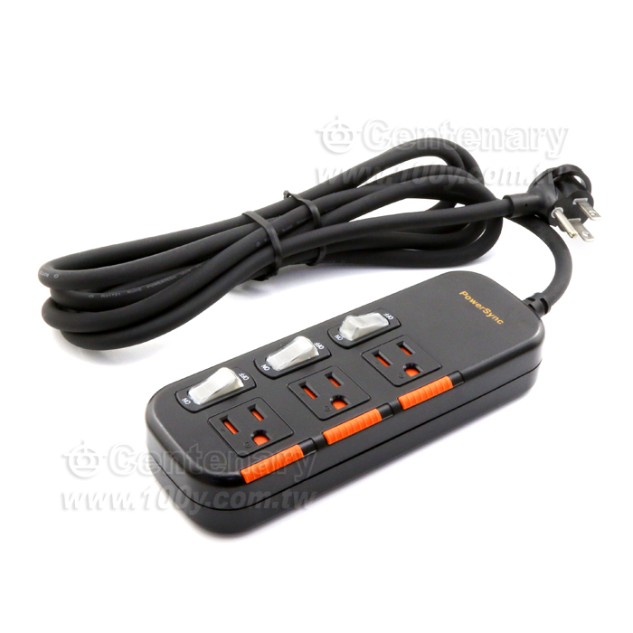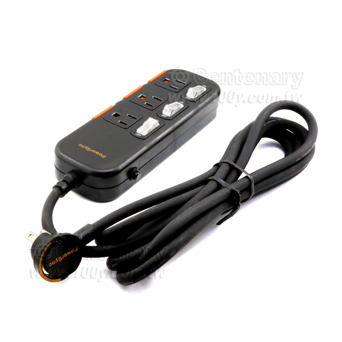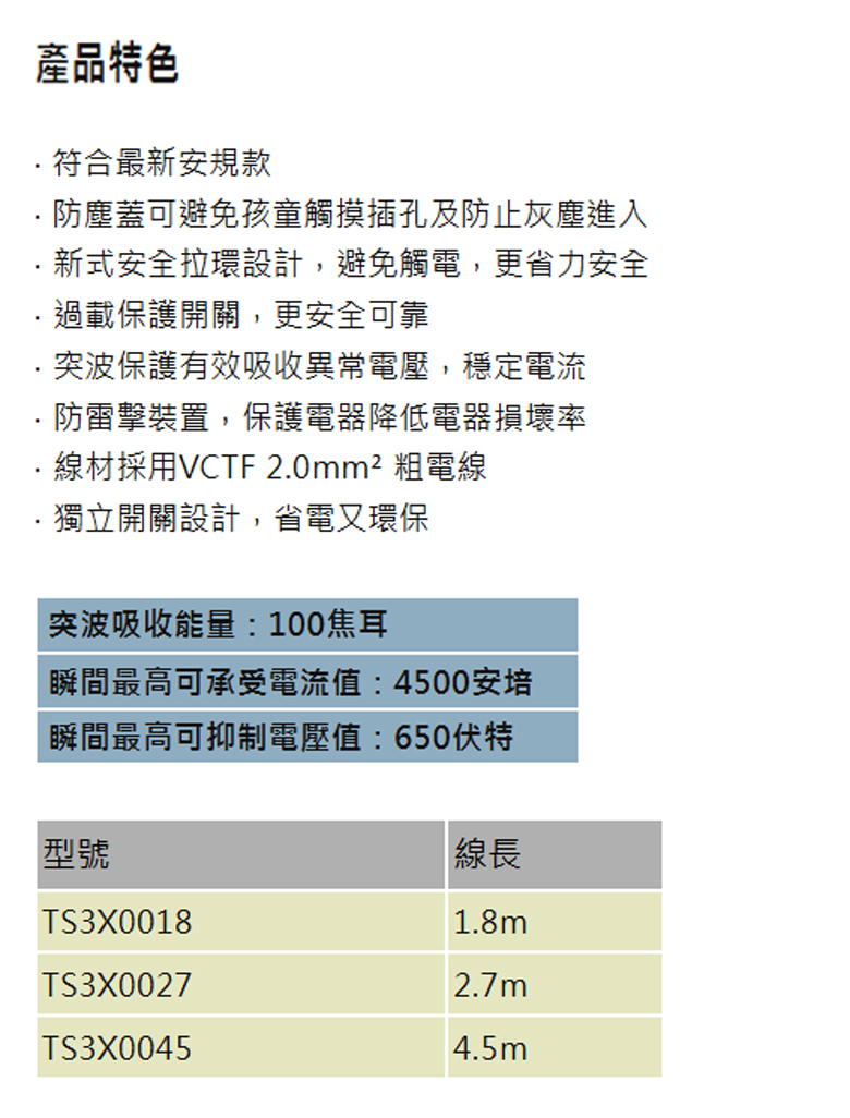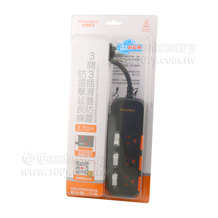 三開三插滑蓋防塵防雷擊延長線 2.7M