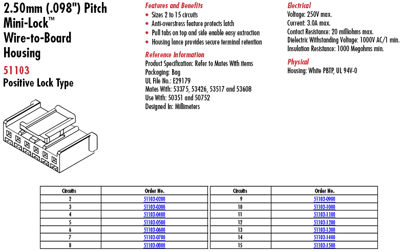 Mini-Lock 51103系列 P:2.5mm 6P 內孔式