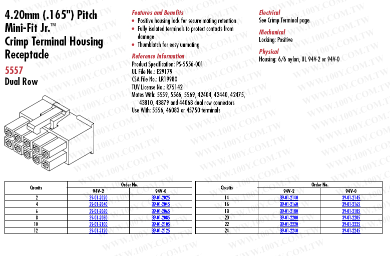 Mini-Fit Jr 5557 母頭 P:4.2mm 2P