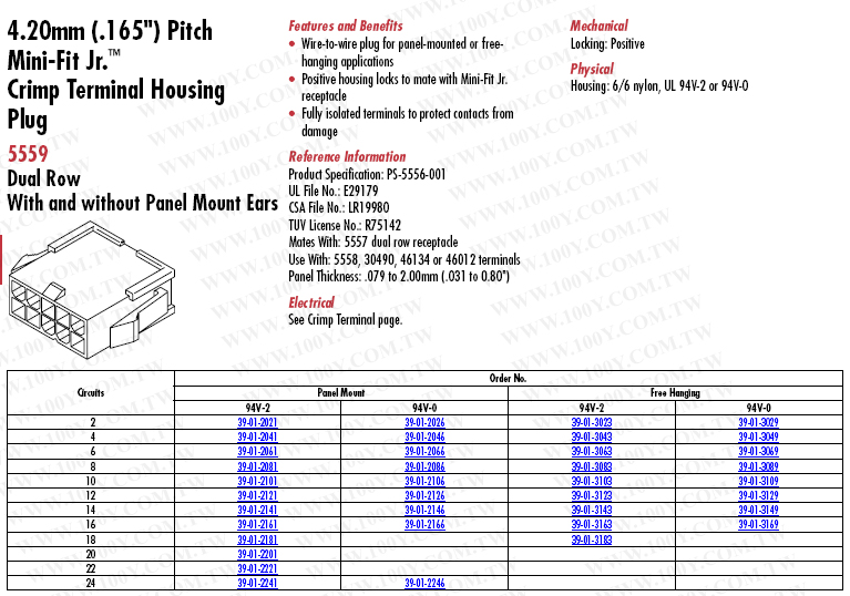 Mini-Fit Jr 5559 公頭 P:4.2mm 2P