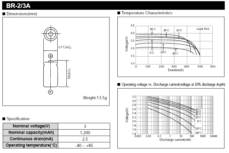 2PIN(正) + 1PIN(負)不可充電鋰電池 3V