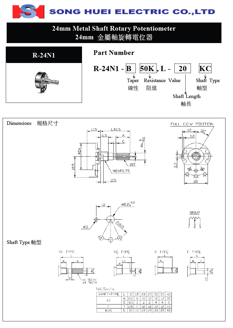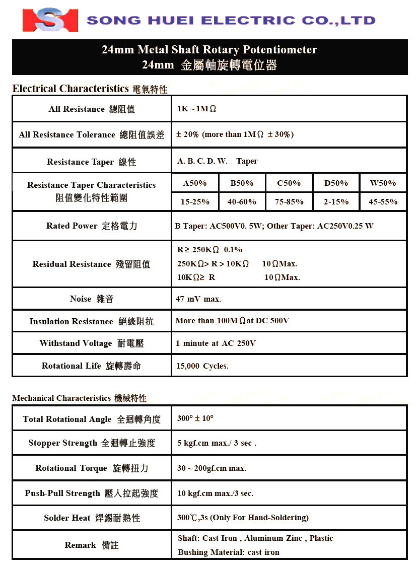可變電阻 20Kohm ±20% 1/2W【ROHS】