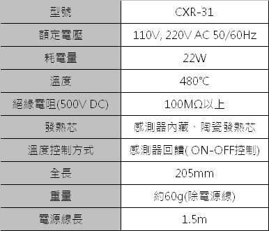 適用於精密焊錫作業,高性能型。操作性強、小型、輕量、高性能。抗菌橡膠手柄護套。介面式發熱芯,簡單交換。鍍鉻焊嘴。
