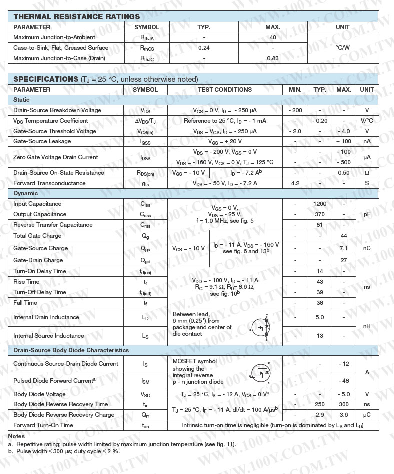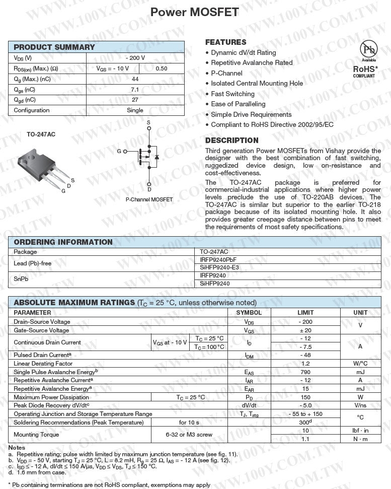 TO-247AC (ROHS) MOSFET P-Ch 200V 12A
