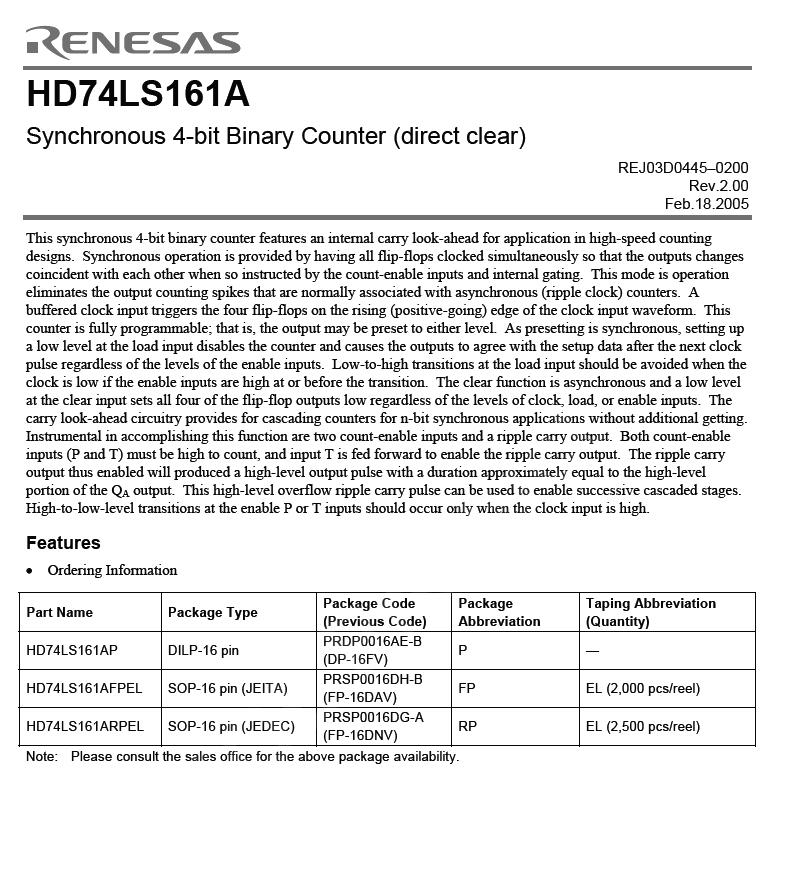RENESAS-HD74LS161AP
