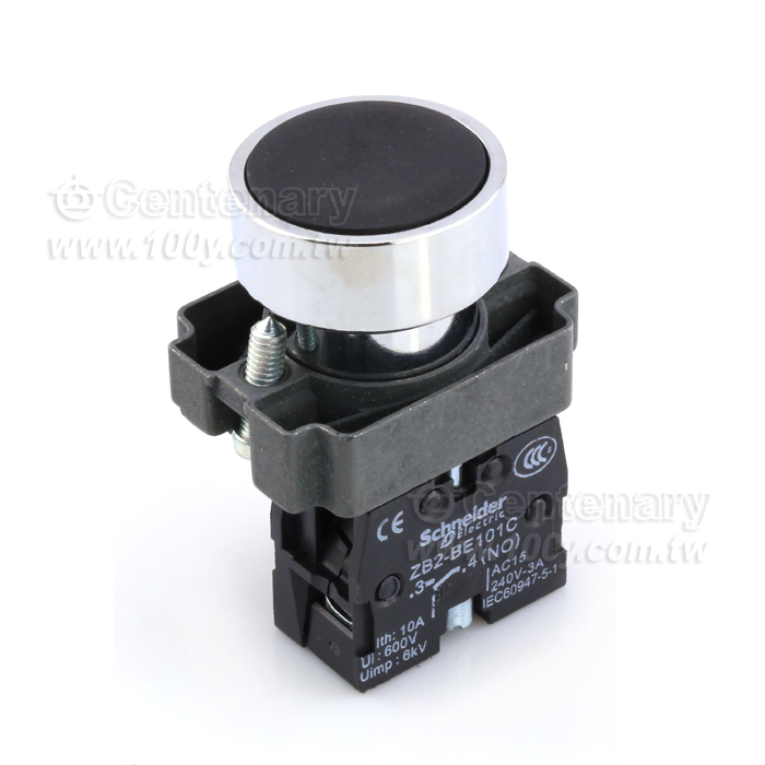 施耐德_黑色圓形平頭自複位啟動按鈕開關