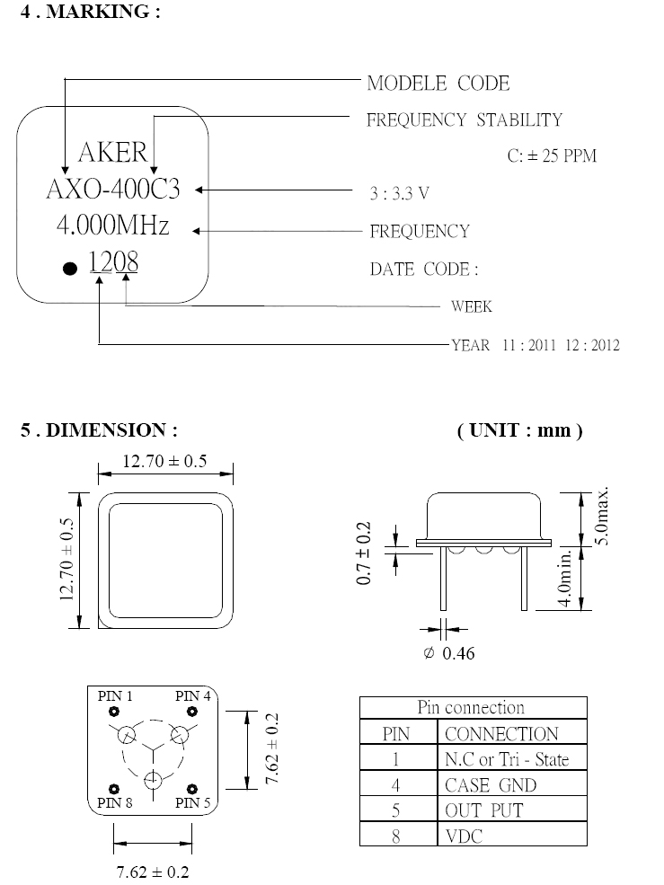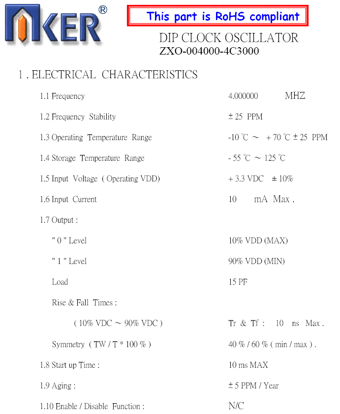 AKER ZXO-004000-4C3000石英震盪器