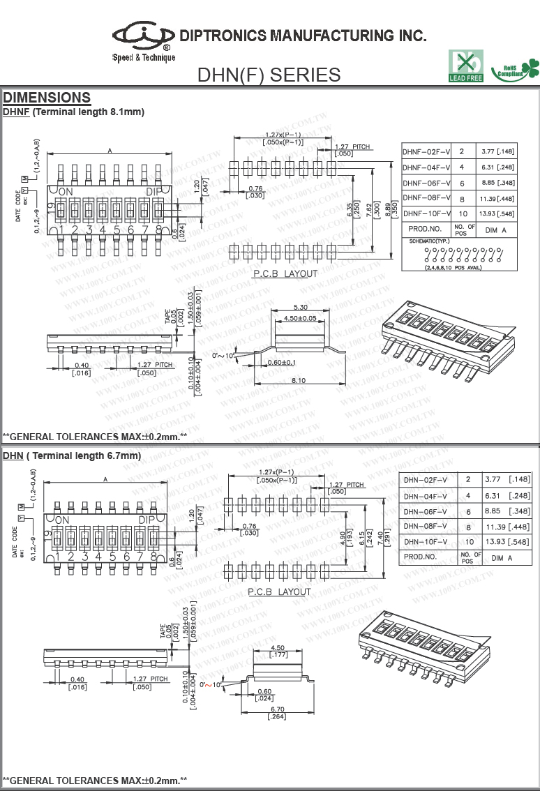 SMD型 4P指撥開關 1.27mm【ROHS】