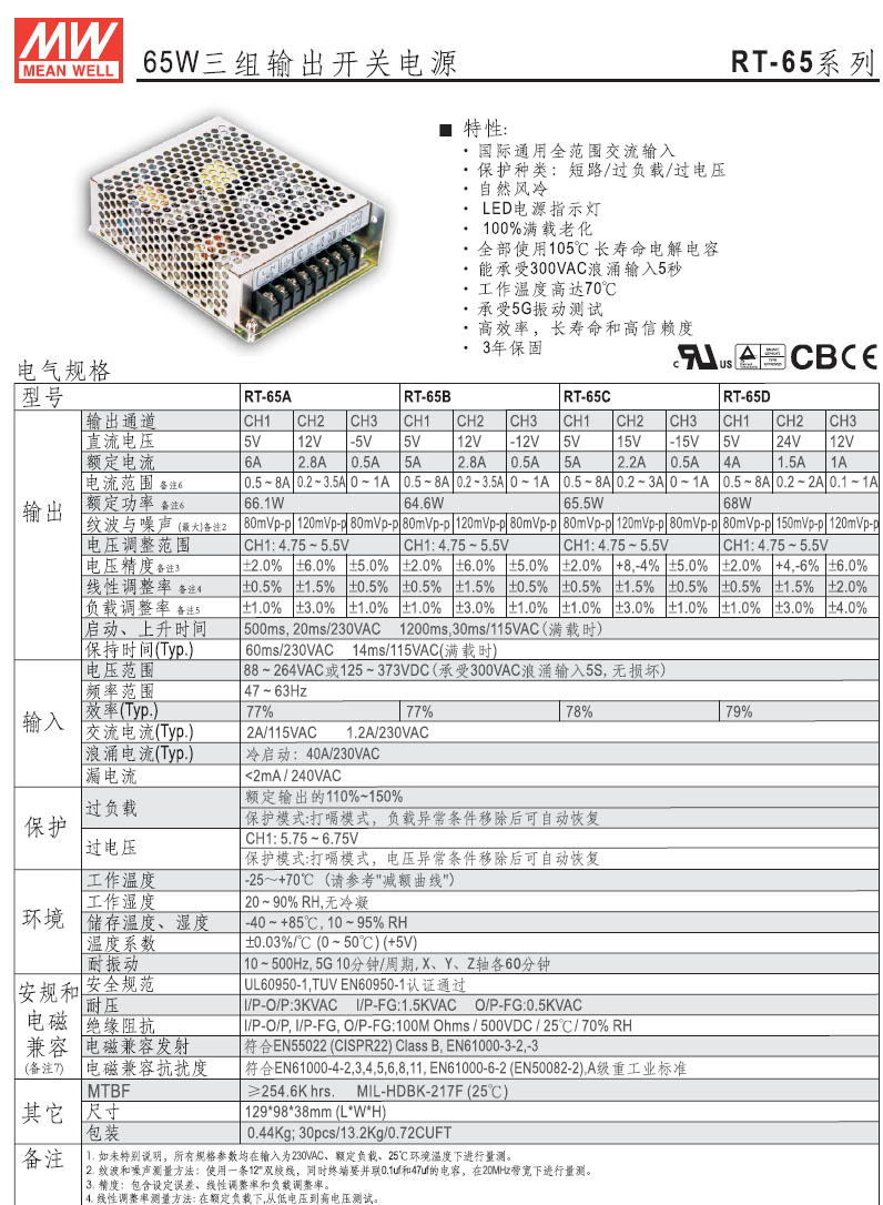 RT-65C 三組輸出開關電源