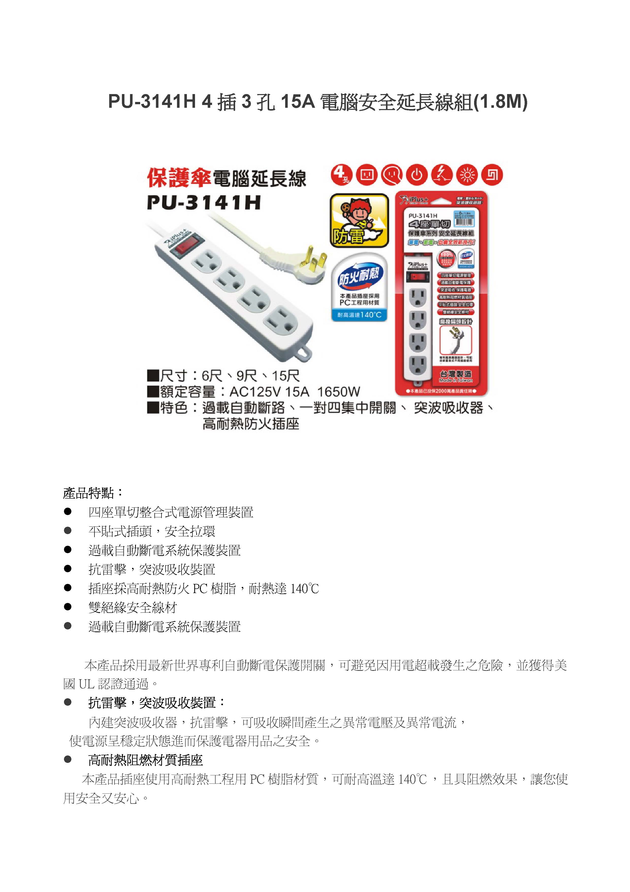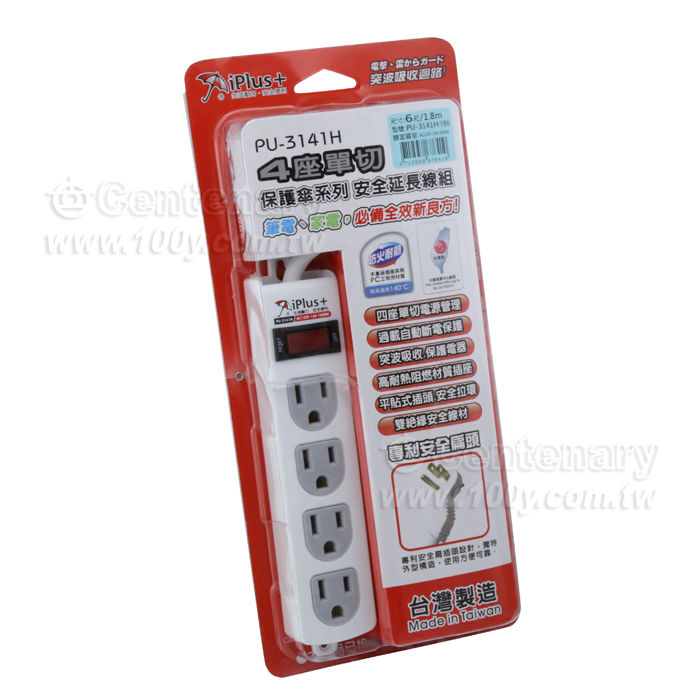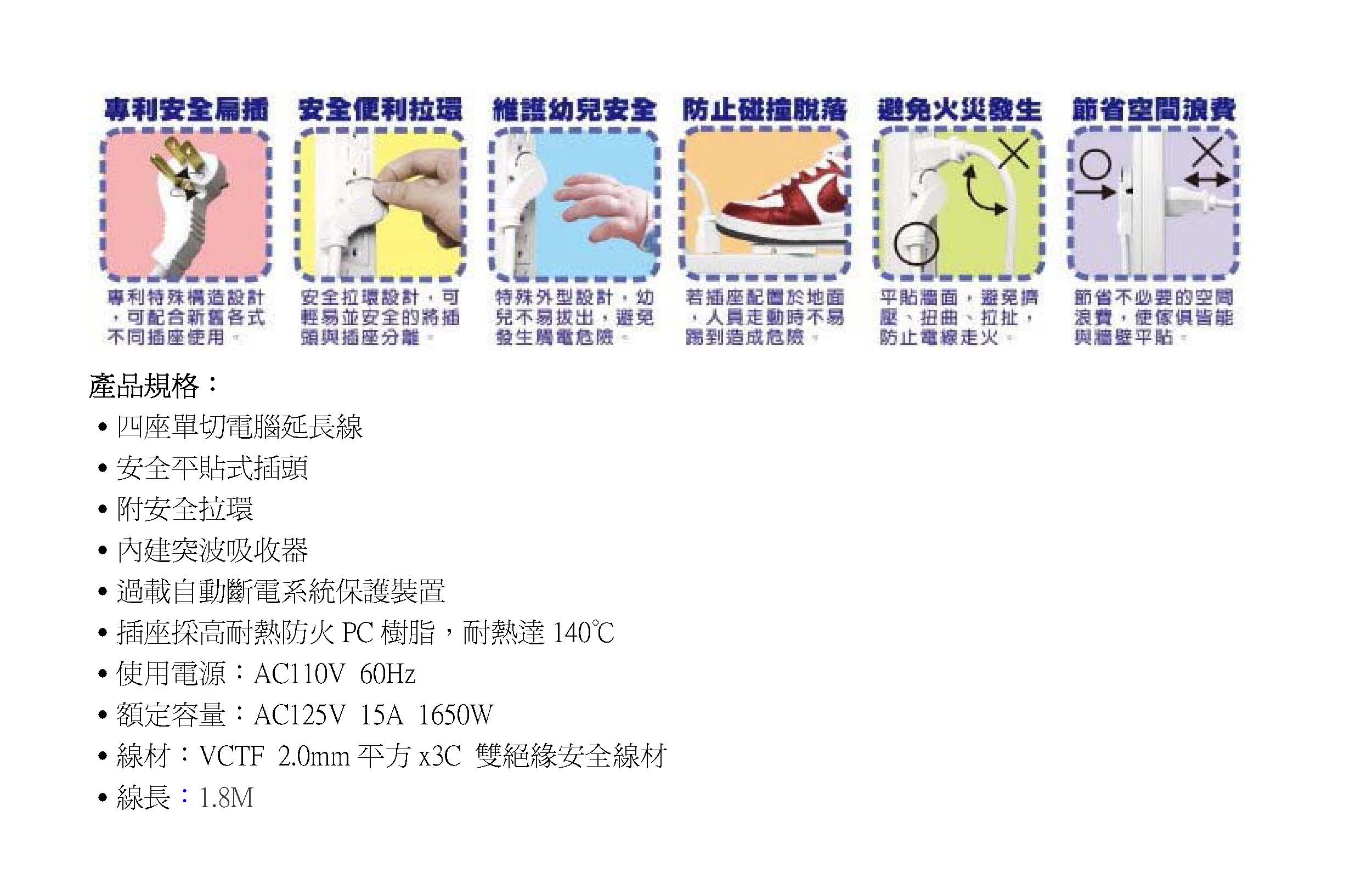 1開4插 3孔電腦安全延長線 6尺