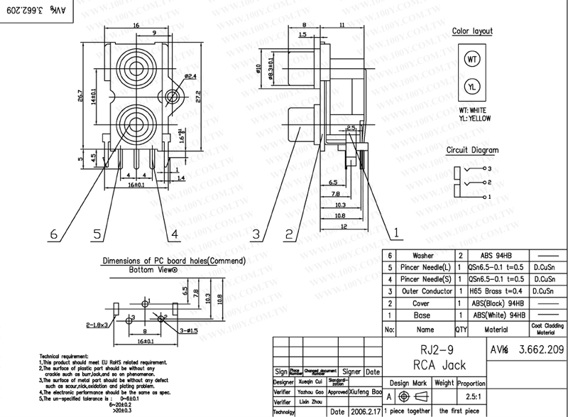 RCA插板式2*1插座(無鉛)