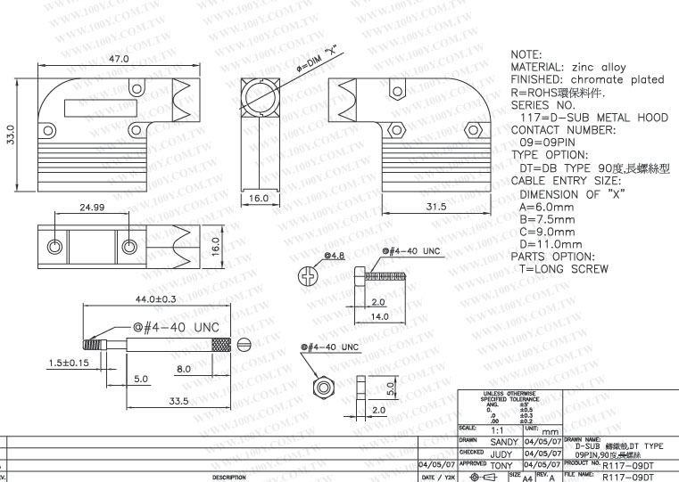 9P D型鐵外殼 90°【ROHS】