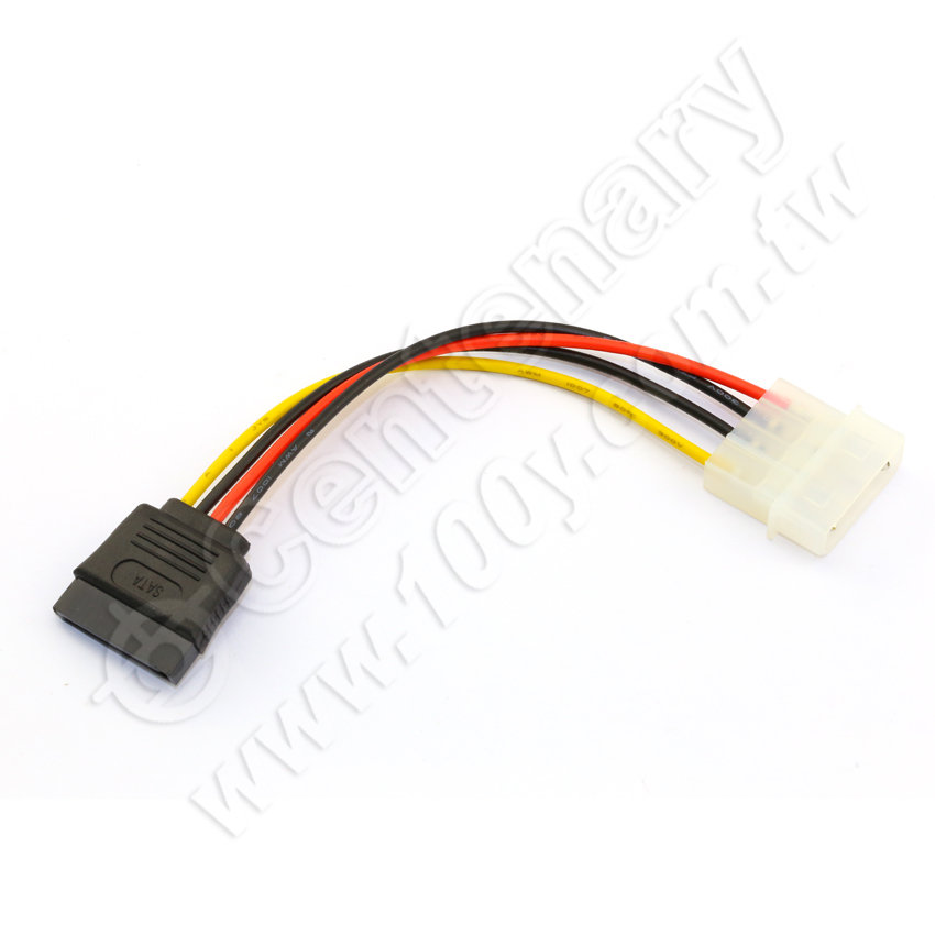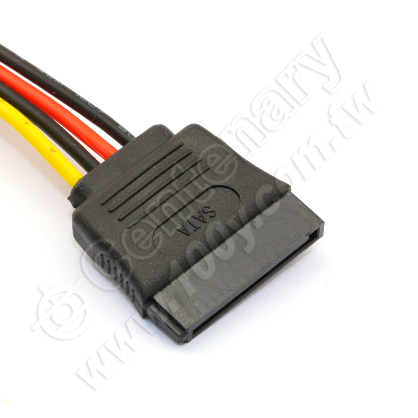●用途:將D型4針電源插頭轉換成SATA電源插頭,使得沒有SATA電源插頭的電腦電源可以為SATA設備供電。常用的SATA設備有SATA硬盤、SATA光驅等。