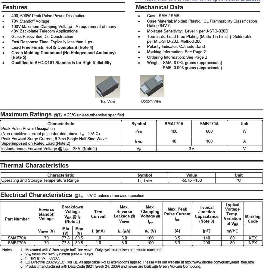 TVS二極管 - 瞬變電壓抑制器 400W 70V