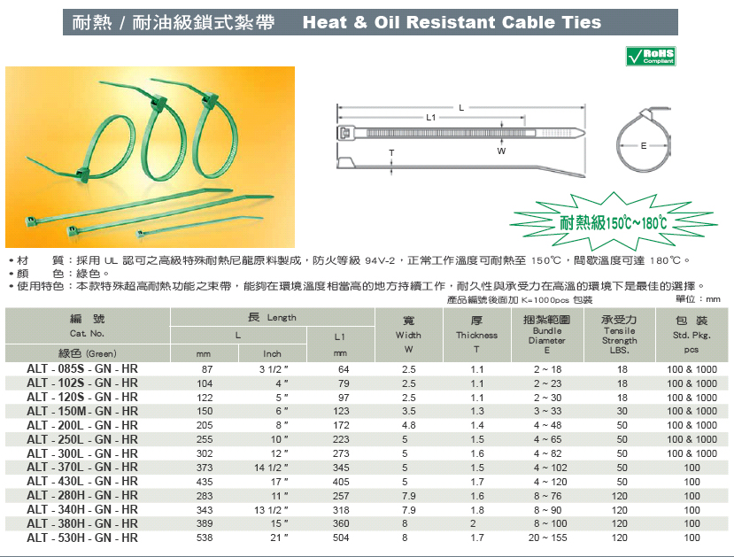 耐熱150℃/耐油級鎖式紮帶 104mm