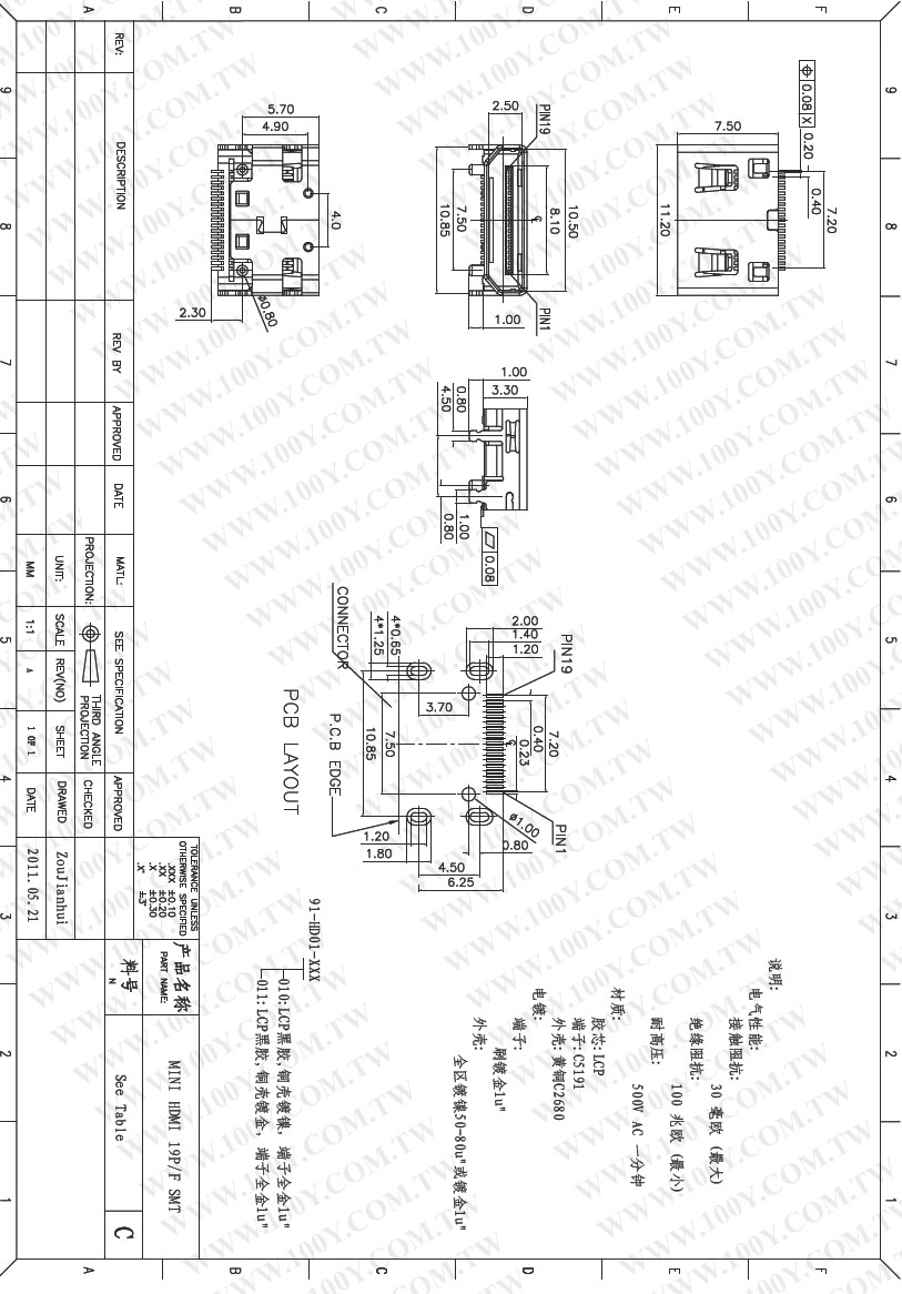 Mini HDMI FEMALE C TYPE SMT 19P