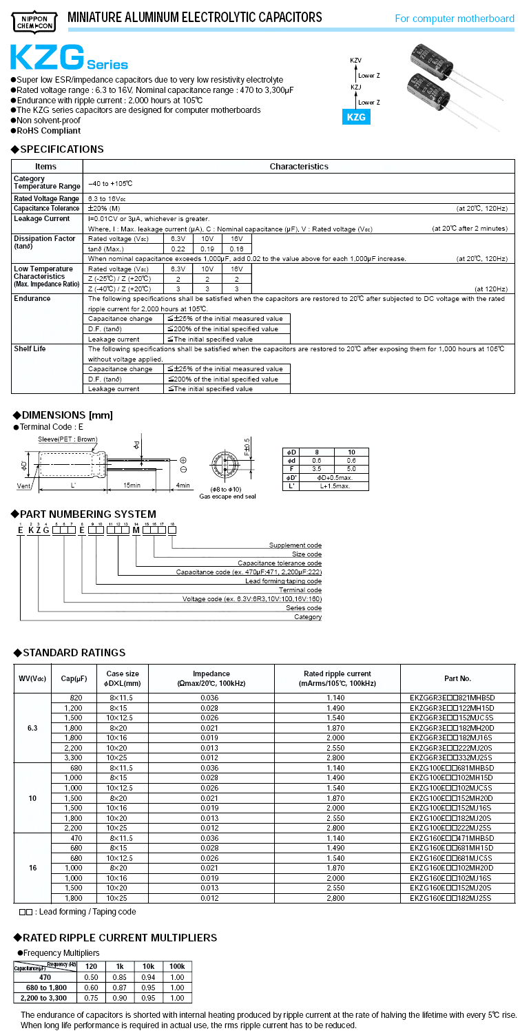 主板電容 高頻低阻 KZG-2200uF/6.3V