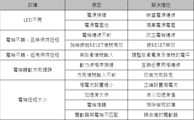 PWR: 滅燈,故障時滅,電機相間短路、過壓保護和欠壓保護。