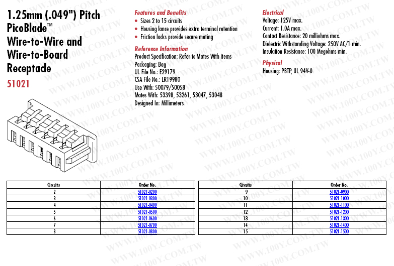 MOLEX_連接器51021系列 Pitch:1.25mm 2P