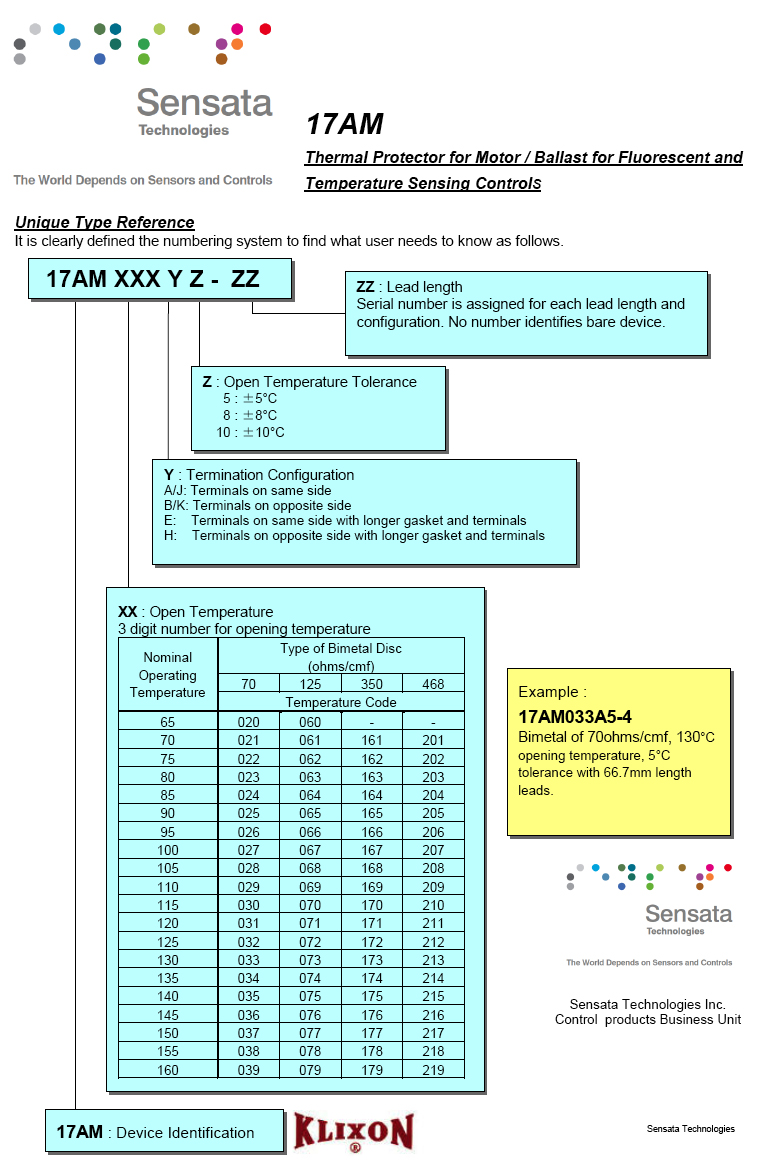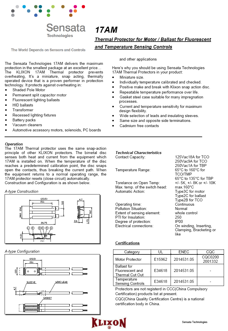 SENSATA_17AM Series 溫度保護器